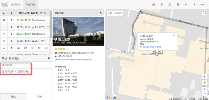 還能修改地點名稱並加入筆記,消費項目也能編輯,有註記的景點右上角會有個紅色小標。