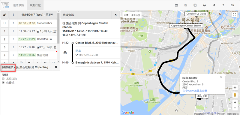 如果是開車也能在路線選項勾選要不要避開高速公路、收費站,跟在 Google 地圖裡編輯一樣方便。