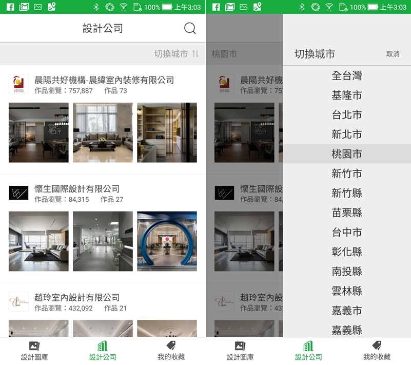 如果擔心設計公司太遠不好聯絡,就切換成所在城市瀏覽,篩選後對後續的作業也比較方便,畢竟有些公司不接外縣市的案子。