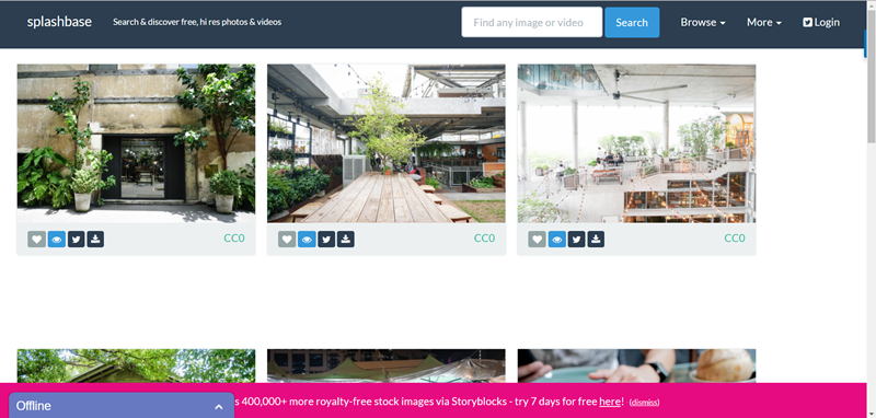 目前有將近 10 萬張圖片,也都是 CC0 免費使用,除了照片外還有向量圖、圖示、PSD 檔等素材可下載,可從縮圖加最愛或分享。