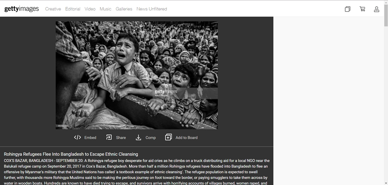 儲存圖片要由新聞報導頁面,點擊更多後另開分頁下載,但尺寸蠻小的像這張孩子哭泣的相片只有 612*408。