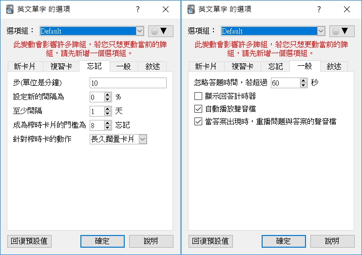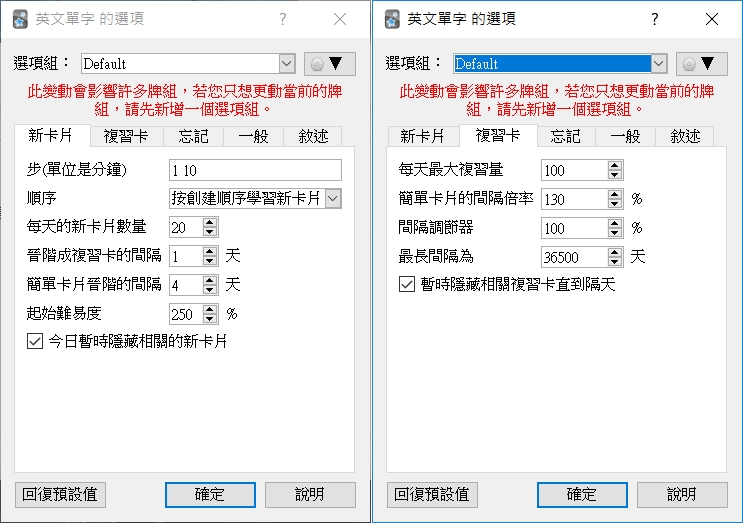 阿湯新增了一個英文單字牌組,先來設定選項。