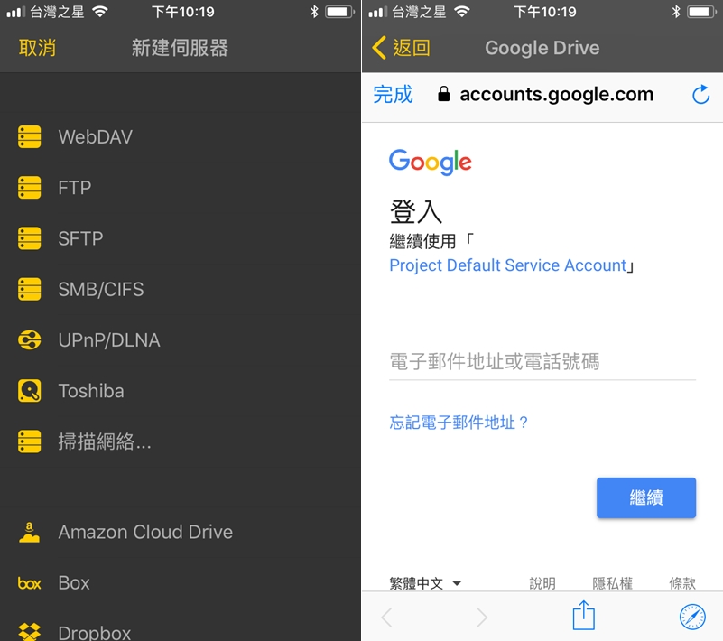 新增伺服器的部分可選擇連結 WebDAV、FTP、SFTP、SMB∕CIFS、UPnP、DLNA、Toshiba 等以及各種雲端硬碟,登入就能檢視其中的檔案。