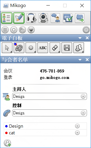 登入後與會人員會列在底下,主持人與控制者都可以調整。