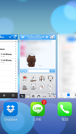 雙擊你的「home」鍵,將多工列中的 Line 關掉,再去重開一次 Line。(右圖是 iOS 7 的多工介面)