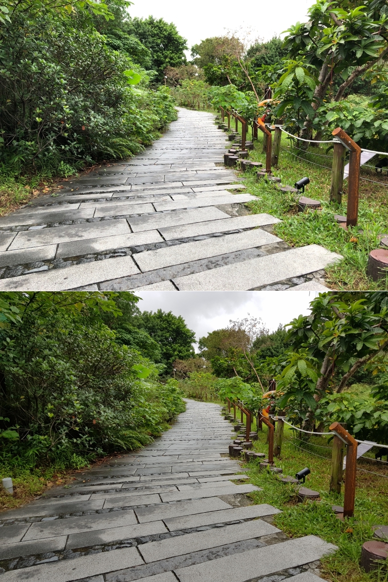 這張照片同樣是 iPhone X 較亮一些,但請注意一下上方中間的天空,Note8 保留住了烏雲的細節,而 iPhone X 同樣有過嚗問題,亮部處理不佳。