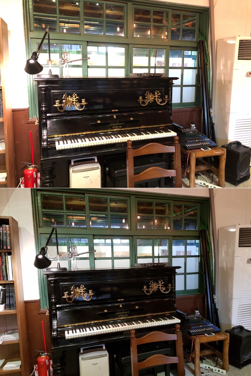 請看鋼琴最左邊的三個白鍵,iPhone X 同樣因為過嚗的問題,所以鍵與鍵的空隙已經看不到。