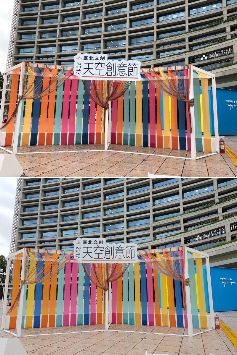 這畫面和上一張一樣,先看一下天空的烏雲,再看一下右邊那支白色的裝置藝術(應該是雞?),你會發現又是同樣的問題,亮部的部份 iPhone X 都是過嚗的,特別是裝置藝術上的紋路,Note8 是完整保留的。