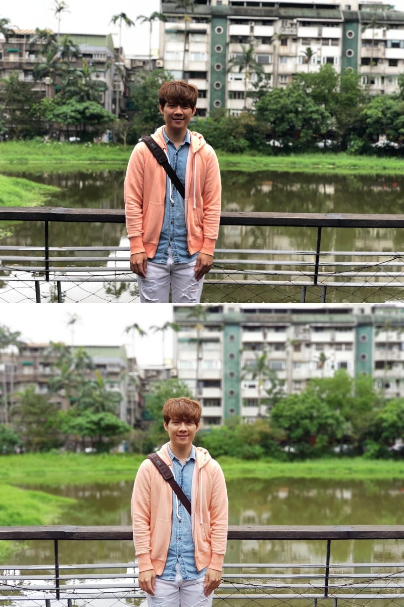 接下來我們先來看一下前置鏡頭的部份,阿湯嘗試微逆光的方向拍攝,在鏡頭的部份很顯的可以看出 Note8 更廣角,至於人像的呈現應該很明顯的看出差異,Note8 在自拍人像的部份相較於 iPhone X 更加討喜,而且在 iPhone X 的照片上,注意看阿湯的外套,非常多過嚗點,前置鏡頭可以說是有點槽糕。