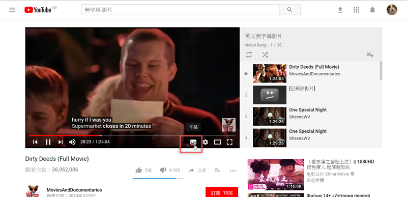 一般下載 YouTube 的影片常會發現開啟後沒有字幕,因為字幕檔是另外的,像這部如果沒點底下這個圖示就不會顯示字幕。