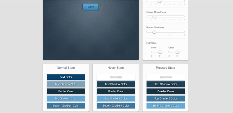 試試看按鈕,除了可再右邊編輯名稱、調整字體與形狀的尺寸、邊框厚度,往下看還能分別設計正常、懸停、狀態的配色。