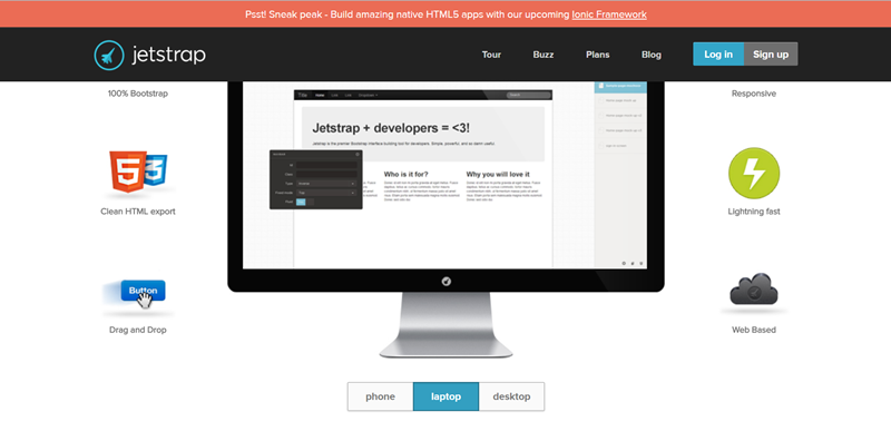 阿湯也是不註冊先看看試用版功能,這款介面除了從左邊拖入設計外,右邊也會顯示 HTML、CSS、JS 代碼。