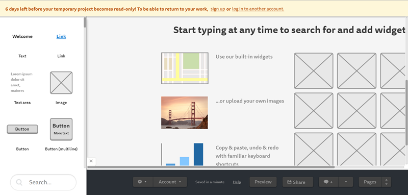 看到這裡應該會發現今天介紹的線上工具都很容易上手,依循選擇模板、拖入需要的配置並依需求自行調整,只是差別在可以轉存或只能線上試用。