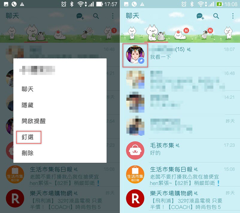 這樣的話,結合之前出的「釘選」功能,可將重要的聊天視窗也置頂,變成「雙重置頂」,就不容易漏掉訊息啦。