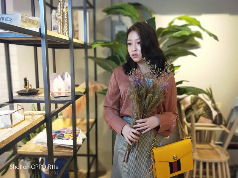 室內的人像模式也相當的考驗畫質,因為大部份的人像模式拍攝是採用遠焦鏡頭所拍攝,光圈一般都不夠大,因此畫質也相對較差一些,但在 OPPO R11s 搭載的是 f1.7 雙超大光圈鏡頭,就算是在室內的昏暗處要拍攝人像也是沒有問題的,仍然保有相當程度的畫質。