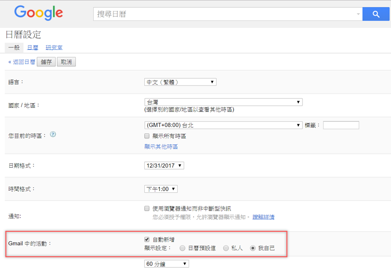完成後再點儲存即可,這樣就不用再擔心 Google 自動幫你掃描 Gmail 內容、加入行程了。