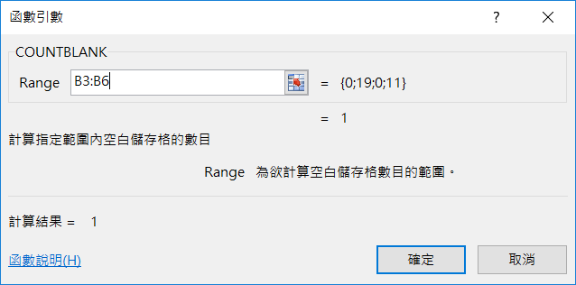 確認一下函數的功能是不是你要的,無誤的話就用滑鼠選取儲存格範圍,這邊會直接顯示計算結果,點確定。