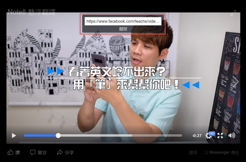 怕有人忘了臉書影片不是用最上面的網址列,阿湯重頭示範一次,先到你要下載的頁面,對著影片隨便一個地方按右鍵,出現「顯示影片網址」。