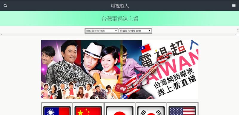 最上面可切換到中、日、韓、美這些國家的直播,如果就是要看台灣的就往下滑點各個頻道的圖示進入,會連到其他網頁再開啟影片,雖然有提供一個以上的影片來源,但稍嫌麻煩了點。