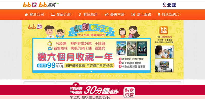 bb 寬頻在桃園是北健,在雙北、台南、高雄是其他名稱,內容跟凱擘差不多,有興趣的朋友再深入去比較,另外這兩家也都有 APP 可使用,但評價都不太好,有的要搭配機上盒但也不一定能順利使用,就看大家使用上的需求了。