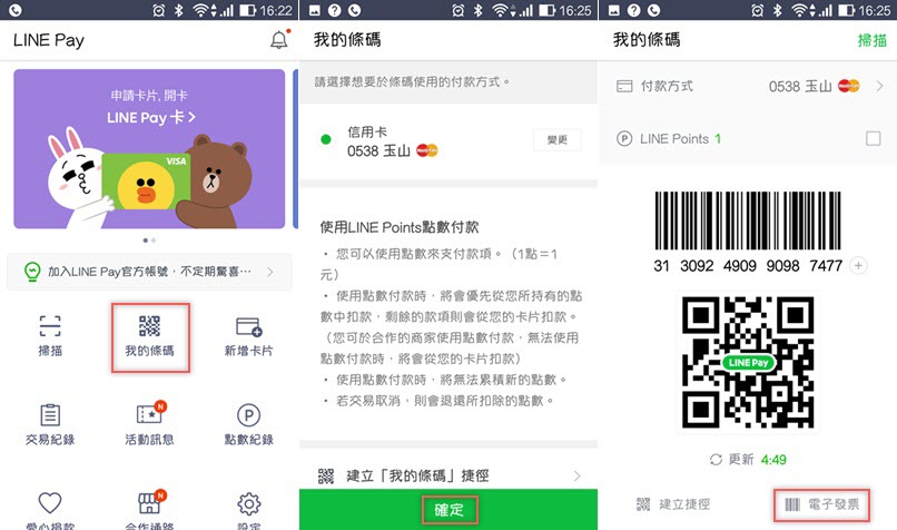 這次更新雖然官方都說是 Android 先行,但 iOS 也會很快跟上,可能你看到這篇的時候就可以用了,而其中有些功能是 iOS 版本來就有的,先來看 LINE Pay 專為台灣用戶設定的電子發票功能,到 LINE Pay 選擇我的條碼 → 建立我的條碼捷徑 → 電子發票。