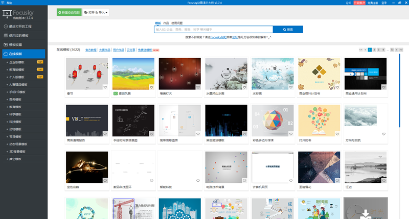 不想從零開始就選擇要使用的模板再更改即可,包括商務、教育、動物、科技、節日等各種類別應有盡有,設計的也蠻精美的。