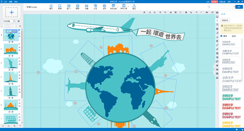 阿湯選個旅遊類的,可以拿來做員工旅遊的規劃或心得分享,左欄是縮圖檢視、上方及右邊都是各式工具及動作項目,不懂的點進去就知道了。