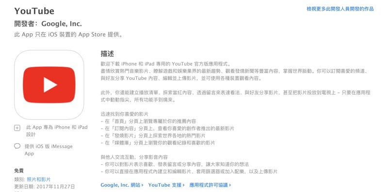 - iOS YouTube 更新:請點我