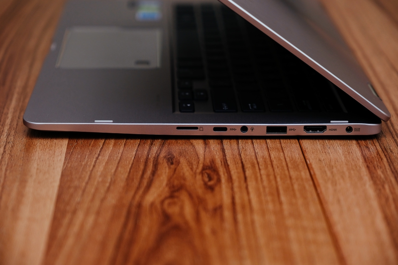 另一側邊為 Micro SD、USB-C 3.1、耳麥孔、USB 3.0、HDMI 以及電源孔。