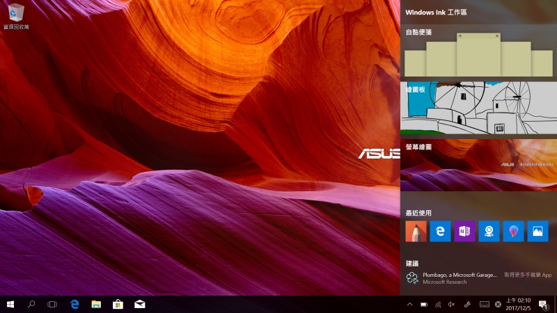 搭配 ASUS Pen 使用 Windows Ink 工作區更是得心應手,這是在 Windows 10 中的新功能,可以新增自黏便箋、開啟繪圖板或是螢幕繪圖等。