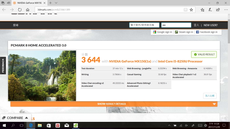 至於搭配了獨立顯卡以及第八代 Intel Core-i58250 處理器的效能如何,我們也來做點簡單的測試吧。
