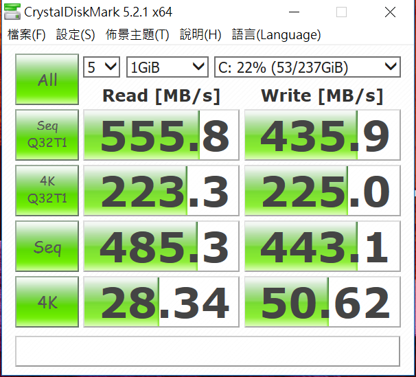 透過 CrystalDiskMark 測試 SSD 的速度,讀寫表現都相當不錯,阿湯在實際使用中的感受也確實相當的順暢。