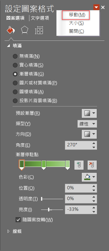 試著讓它更加個人化,視窗右上角倒三角形點開選「移動」。