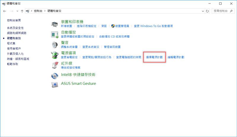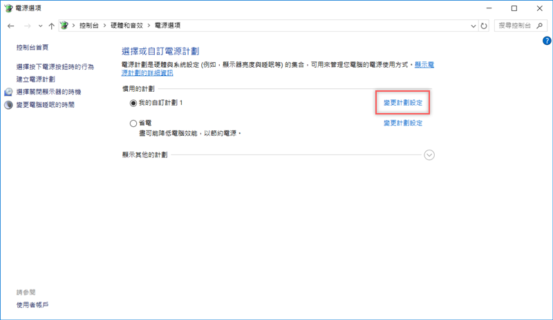 到控制台的電源選項,看到「選擇電源計劃」。