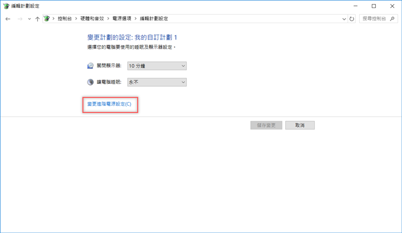 進入「變更進階電源設定」。