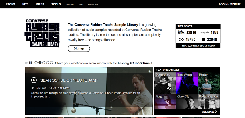 FreePD 這種內容不多可全部打包的,而這篇的網站性質不太一樣,「The Converse Rubber Tracks Sample Library」目前收集 42,916 項來自錄音室的純音頻樣本,可下載整首或其他樂器的部分,適合有在做音樂的專業人士參考,一般人也能當作音效來使用。