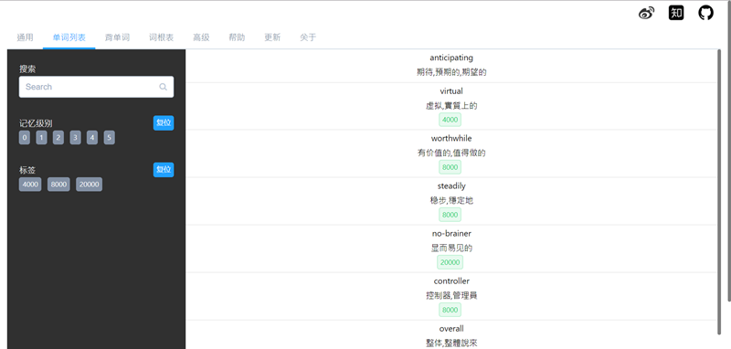 面對密密麻麻的列表可輸入關鍵字搜索,或用記憶級別、標籤篩選。