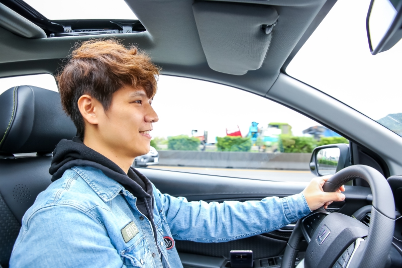阿湯試駕的這款車色是黑/青曜黃搭配,是旗艦 Vogue+ 才有的配色,非常的亮眼有活力,開在路上也不容易和別人撞色。