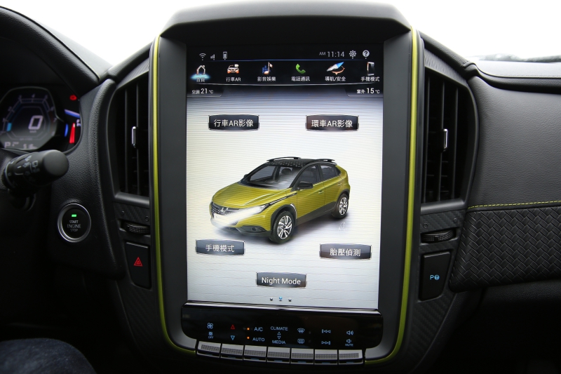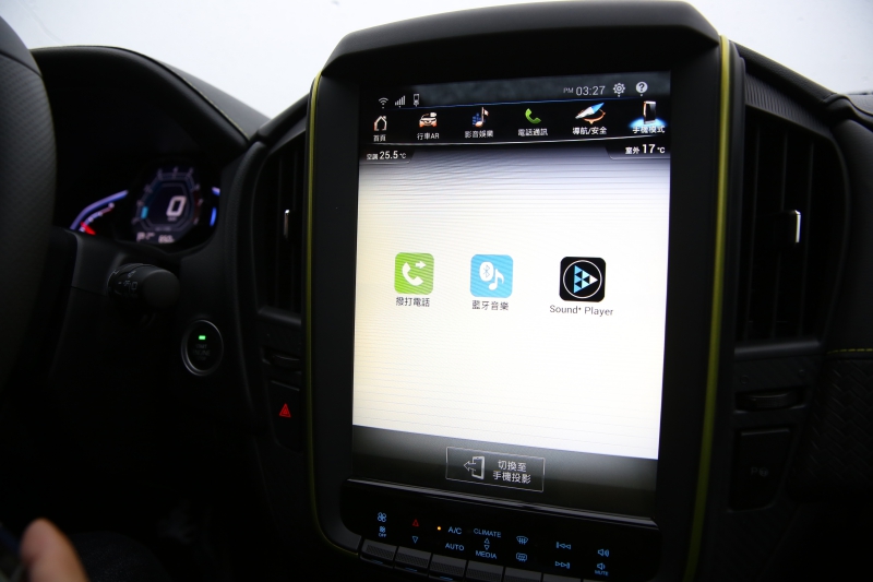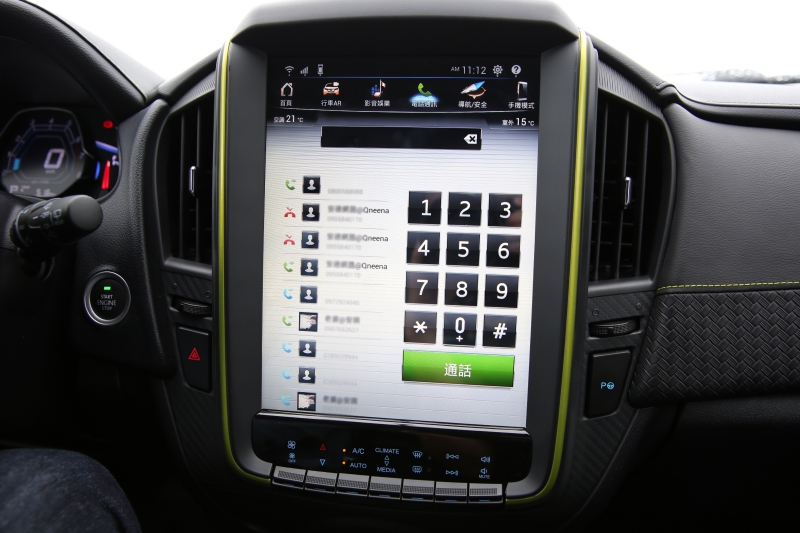 在 12 吋的觸控螢幕最下方還有最基本的冷氣、音量、播放等操作的實體鍵,將這些按鍵與螢幕邊框結合非常的好看。