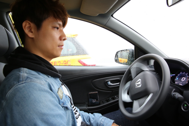 看到方向盤自己在轉了嗎?阿湯是完全放開手,只看著螢幕指示在踩油門、剎車跟排檔而已。