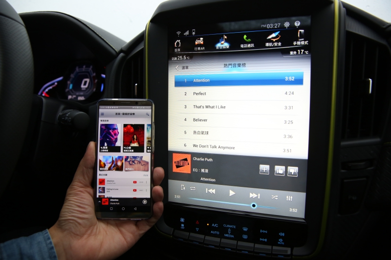 行車中十之八九應該也都會放音樂吧,最直接的方式就是透過藍牙連接直接播放手機中的音樂,而且連接完後也可以在畫面上直接操作上/下首或是暫停等。