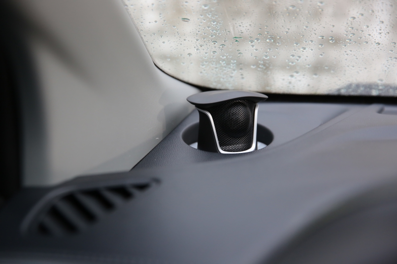在前座的正中間(螢幕下方),搭配了一顆重低音喇叭,音質有相當的程度的水準。(旗艦 Hi-Fi 版車型以上才有的配備)。