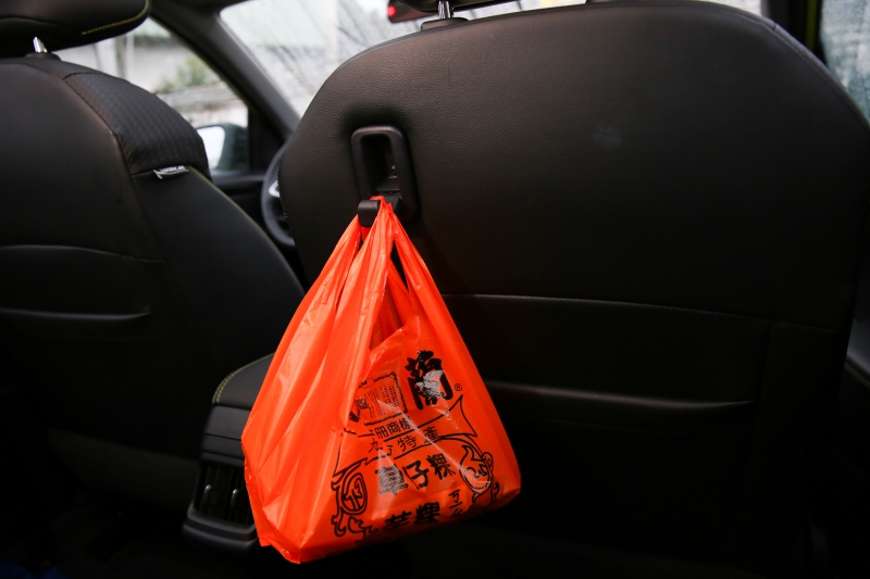 在副駕駛座的腳側有個吊勾設計,可以用來掛袋子,這個買宵夜超方便的!