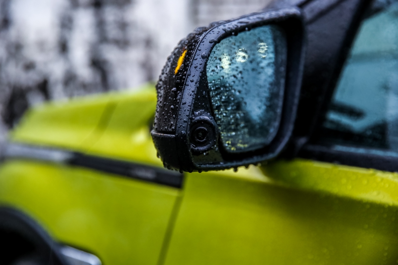 在後照鏡的邊邊可以看到車側影像的鏡頭,後照鏡是採電動折疊設計。