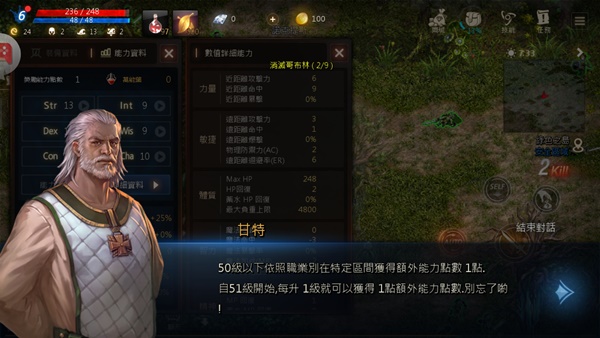 每個裝備的數值和能力都顯示的很清楚,並依等級而異,當你超過 50 級後還會獲得額外能力點數。