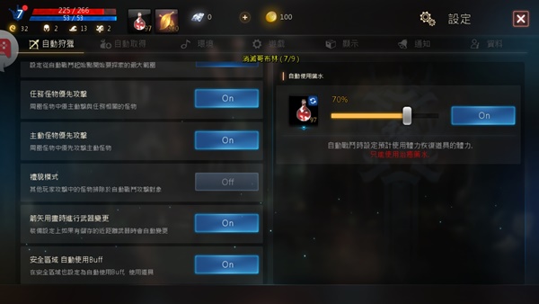 戰鬥部分基本上都可以點自動戰鬥,讓它自己去跑,藥水也會自動幫你加,不用擔心死掉。