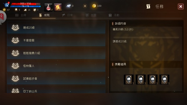 有空也可以看一下目前的成就與達成條件。
