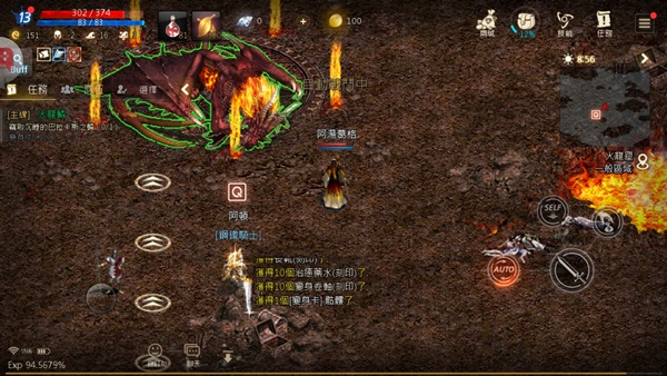 雖然都可點「Auto」自動戰鬥、再點一次取消,但要注意任務部分有的還是要手動,例如當前任務是竊取火龍麟,就要點上面那隻火龍,不然在自動模式下只會一直繞一直走。