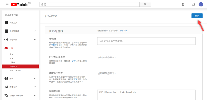 記得回到右上角點儲存,就完成了,你可能會覺得說:那中毒會怎樣?中毒除了可能會協助散佈病毒外,被檢舉多了帳戶就會被系統封鎖,這對常用、慣用 YouTube 的朋友很傷,畢竟一個帳號你可能存了不少東西,最基本的播放清單、訂閱名單要重新用就很麻煩,還是小心為上。