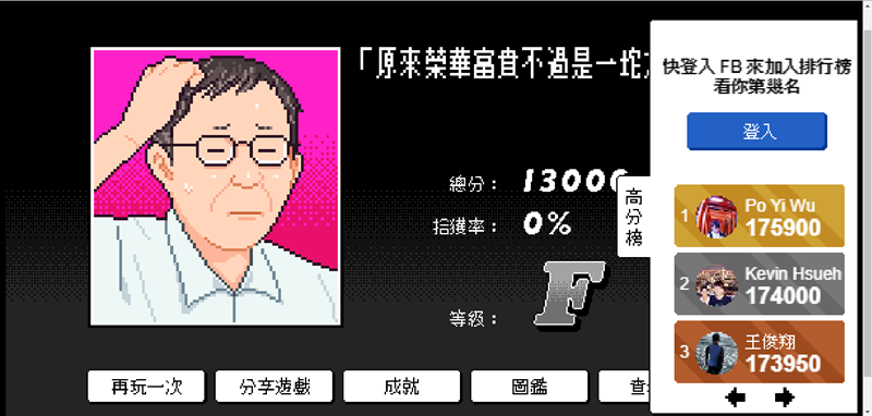 登入臉書就可計分,就等大家入高手排行榜來跟阿湯分享。